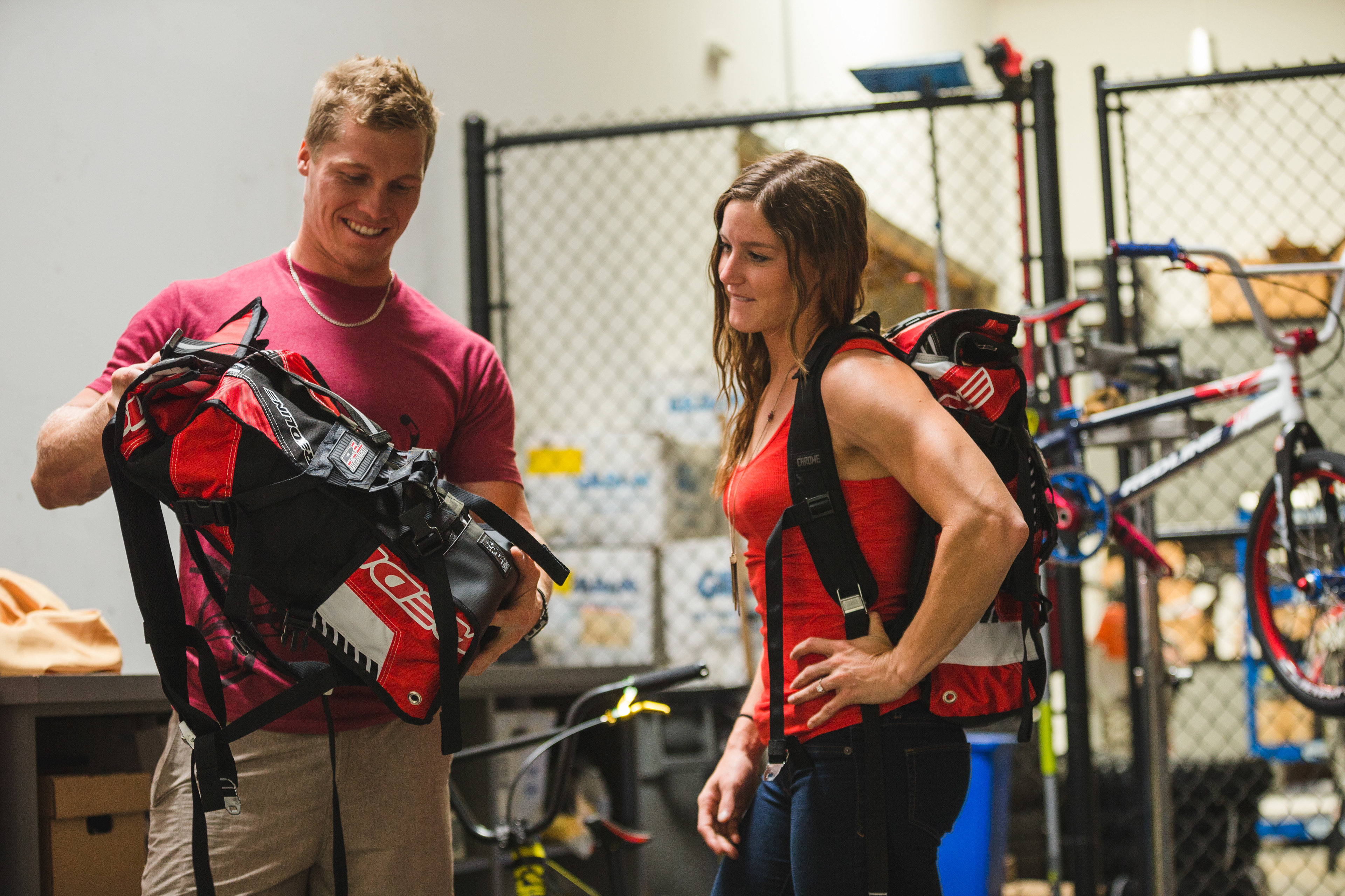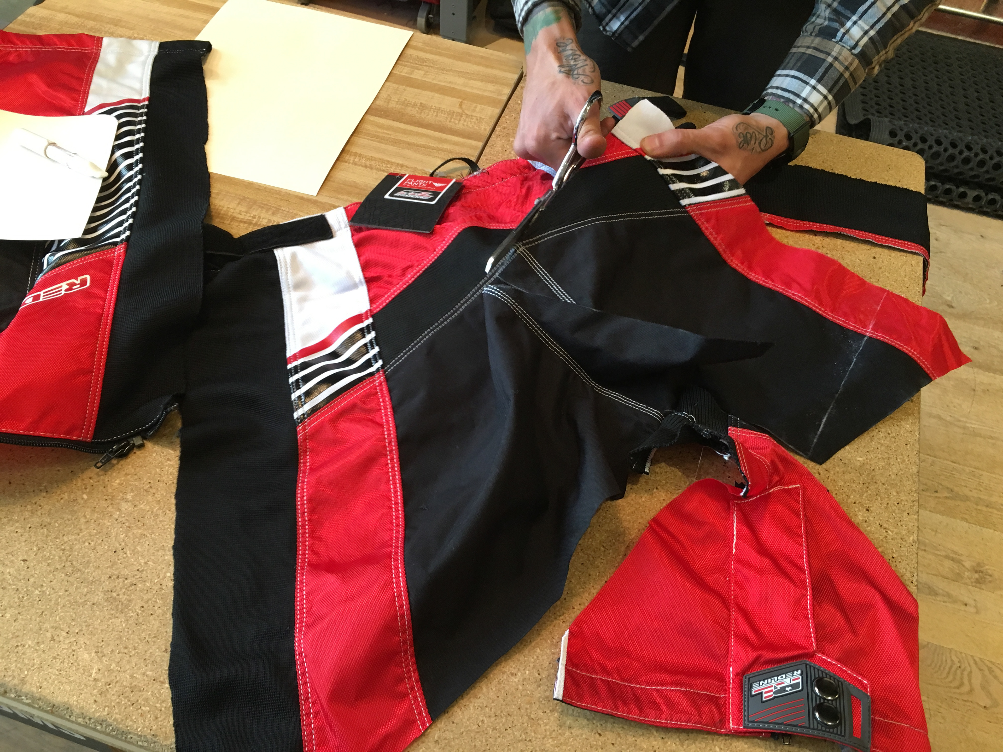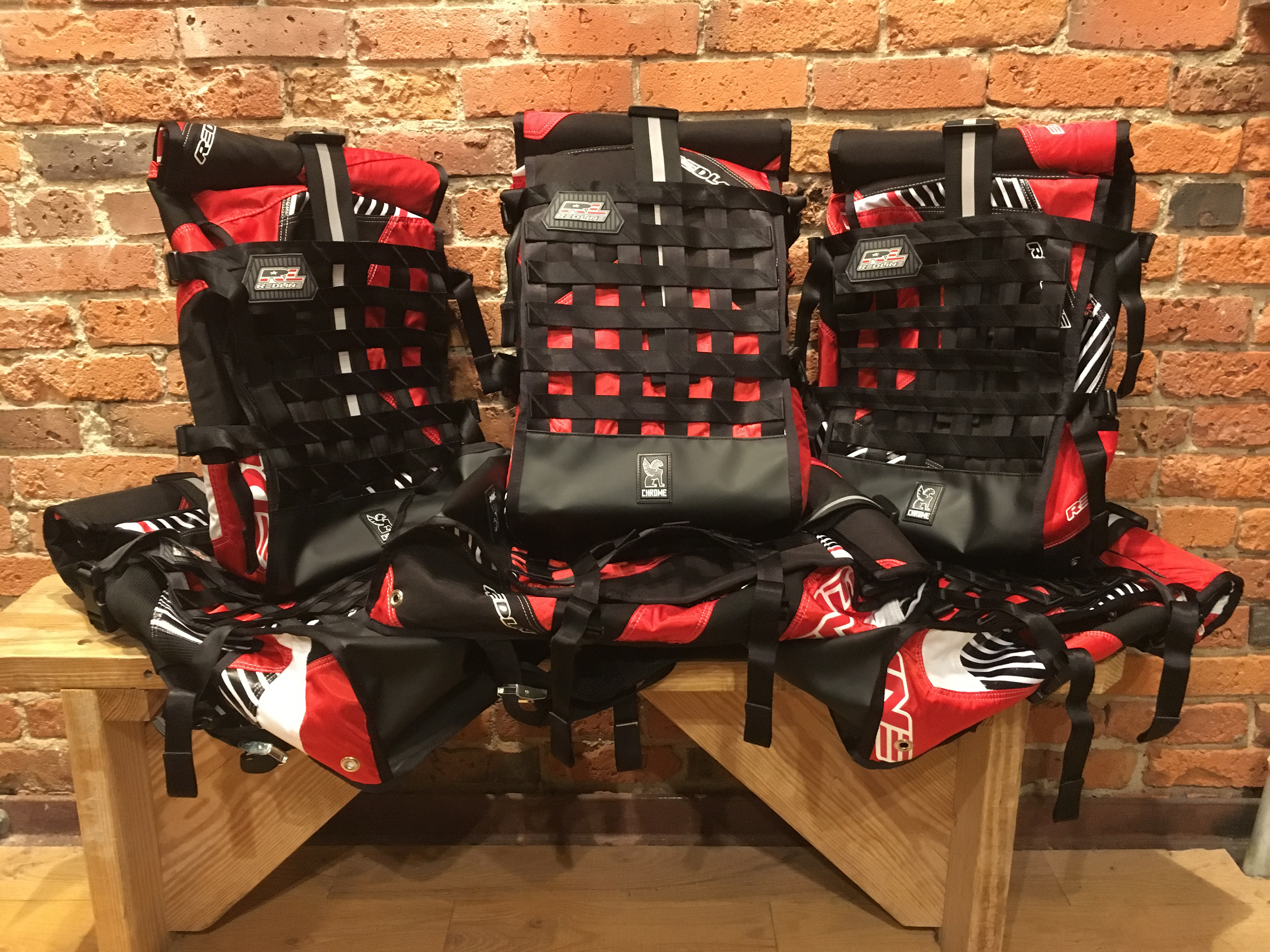 A collaborative project with Redline Bicycles upcycling their BMX race pants in to unique weatherproof rollmop backpacks that were gifted to their 2016 Olympic team. Patterning, construction, and execution.